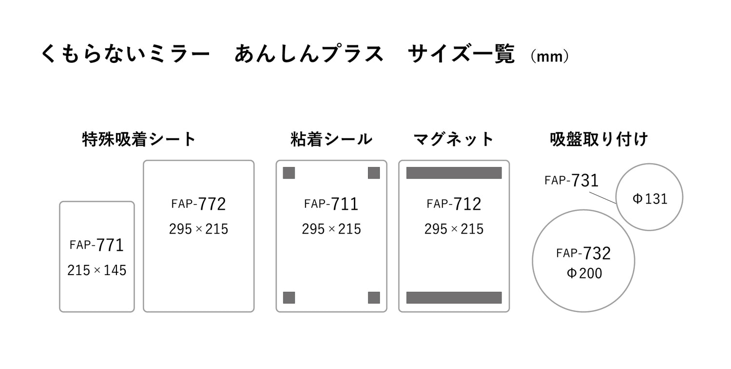 ※ほか、取り付け方や使用上の注意については各商品ページをご覧ください。