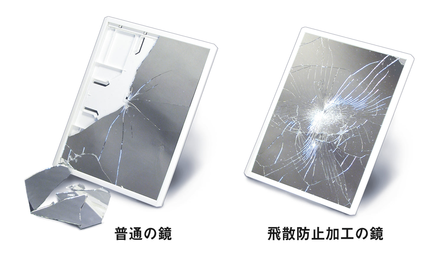 飛散防止加工を施しているため、万が一鏡が割れても破片が飛び散りません。