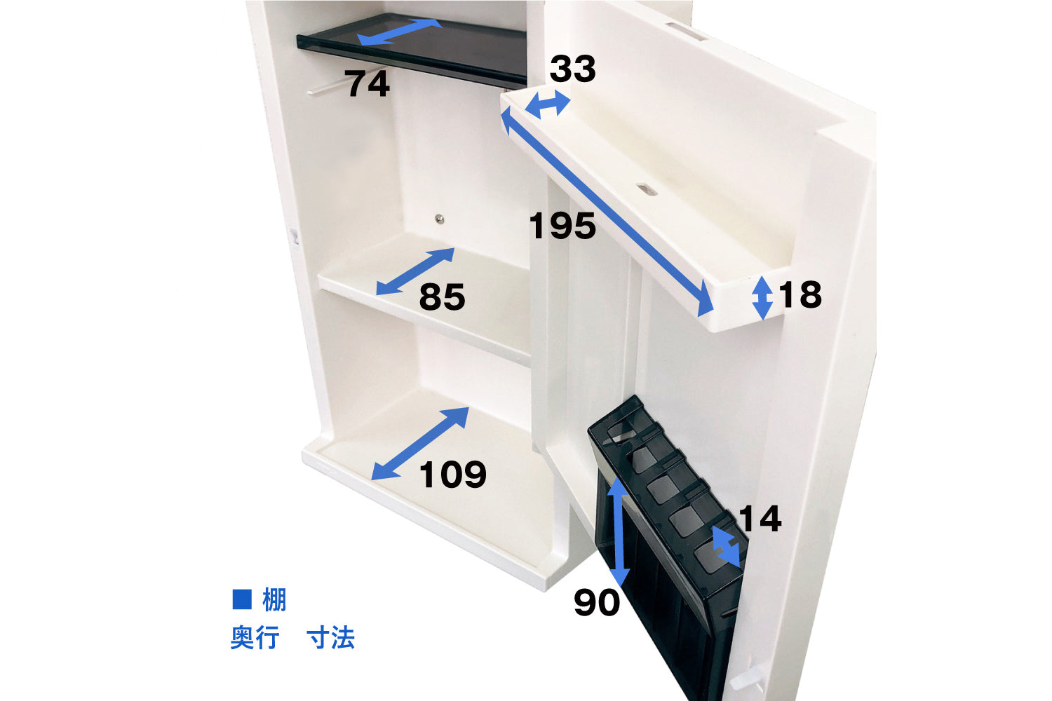扉ポケットは歯ブラシ立てのほかに化粧道具を入れても。